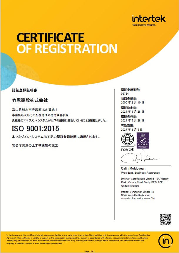 認証登録範囲 :官公庁発注の土木構造物の施工