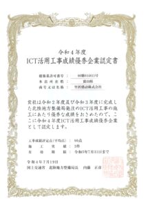 令和4年度「工事成績優秀企業」「ICT活用工事成績優秀企業」の認定をいただきました