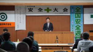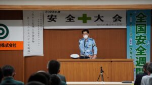 新型コロナウイルス感染症も5類に引き下げられ、行動制限も撤廃されたこと により、3年ぶりに協力会社様にも参加して頂き安全大会を開催致しました。