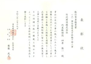 清水建設㈱北陸支店支店長より取引業者優秀賞をいただきました