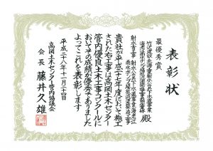 高岡土木センター管内協議会会長より表彰状をいただきました