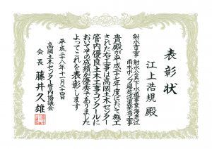 高岡土木センター管内協議会の平成28年度優良土木工事コンクール表彰にて